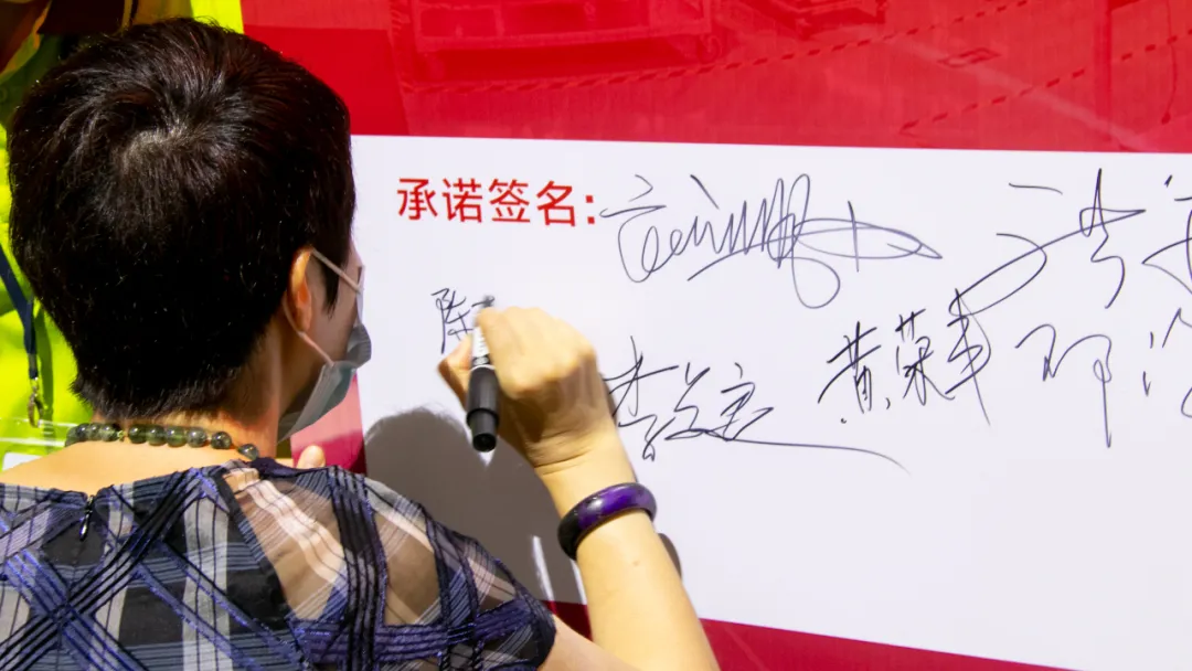 (项目老师及五星班组项目成员在誓词喷绘上签名)